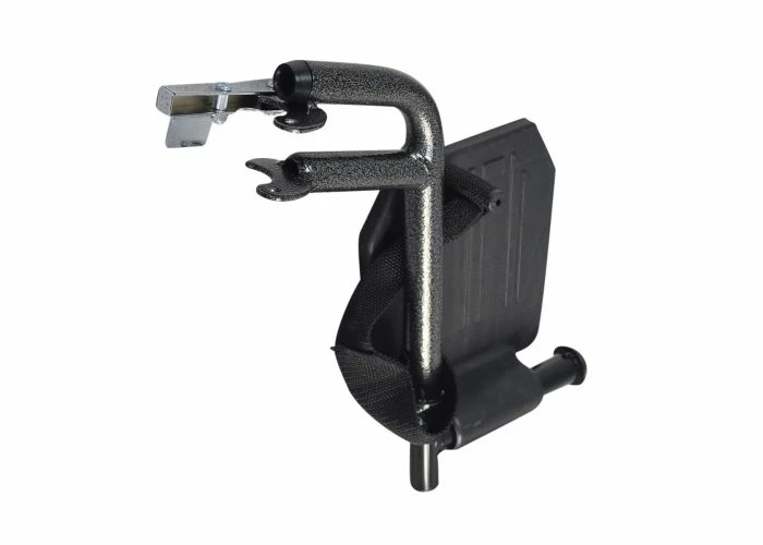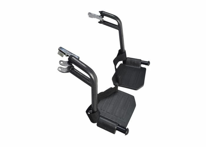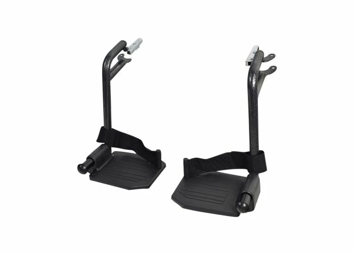 Both footrests sport pivoting footplates, heel straps, and quick-release latches
