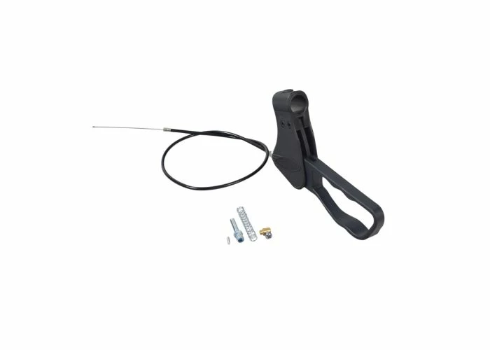 The hand brake assembly for the Drive Medical Lightweight Expedition Aluminum Transport Chair features a 23″ cable sleeve with extra wire as well as the spring and other hardware