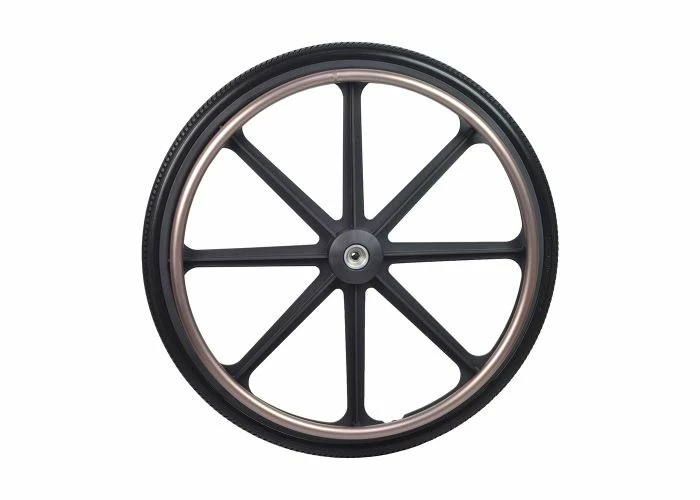 That quick release axle for the Pride Stylus is the secret of this wheelchair model’s success. Pride Mobility designed the Stylus to be a very convenient and easily disassembled wheelchair. There are no bolts, nuts, or screws holding the push wheel to the frame, just the quick release push button that secures the axle in place. Push the button, pull the wheel, and the whole assembly comes right out, making travel or storage that much easier.