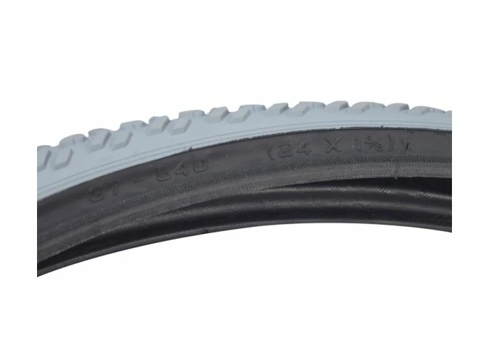 The Primo All-Terrain 24″x1-3/8″ gray pneumatic wheelchair tire with a knobby C763 tread is a truly fine tire that is suitable for indoor or outside use