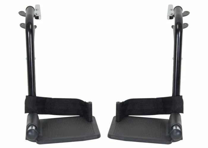 This set of matching left and right leg rests are height-adjustable and include a set of removable heel loops and plastic foot platforms