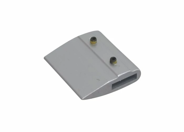Our wheel lock shoe spacer for Invacare manual wheelchairs is a slotted 1-3/4″ x 1-5/8″ wedge of machined alloy